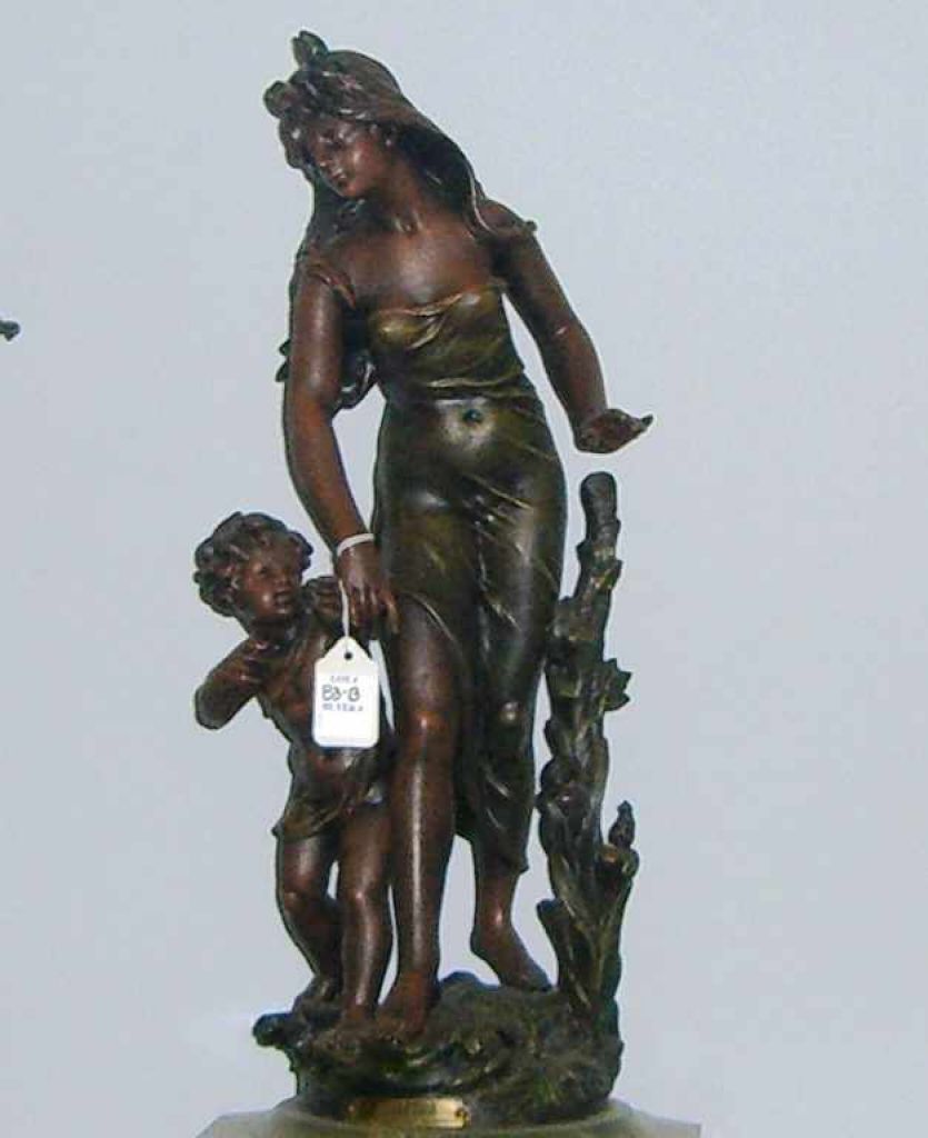 French 3 Piece Bronze w/Onic Vase, Clock Set by B. Rouchon - 27" tall French 3 Piece Bronze w/Onic Vase, Clock Set by B. Rouchon - 27" tall