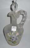 Frosted & clear decanter with painted flowers - 4 1/2" round by 12" tall Frosted & clear decanter with painted flowers - 4 1/2" round by 12" tall