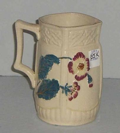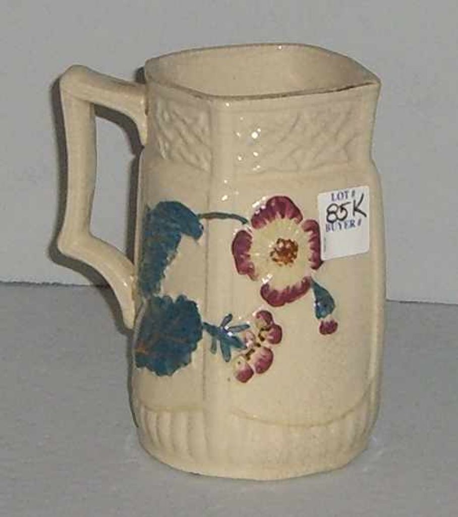 Majolica pottery small pitcher with hand painted poppy flowers - 6" tall Majolica pottery small pitcher with hand painted poppy flowers - 6" tall