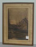 Watercolor of cabin on lake scene - 16" tall by 10" wide Watercolor of cabin on lake scene - 16" tall by 10" wide