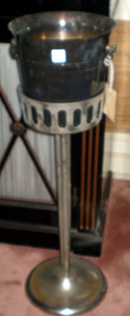 Silver plated Art Deco style champagne cooler on stand - 31 3/4" tall 9 1/2" diameter - John Semour Limited Silver - made in England Silver plated Art Deco style champagne cooler on stand - 31 3/4" tall 9 1/2" diameter - John Semour Limited Silver - made in England