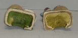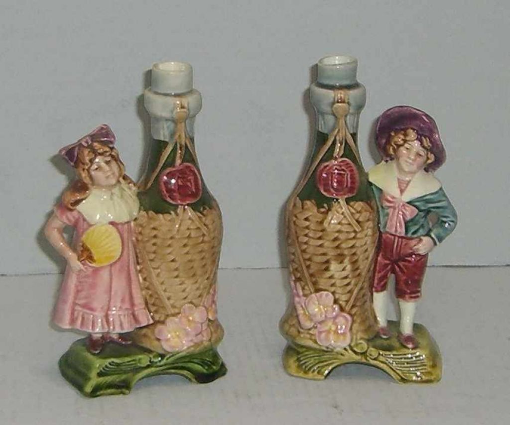 Pair of Majolica Figural Candlesticks with Wine Bottles - 6 7/8" tall Pair of Majolica Figural Candlesticks with Wine Bottles - 6 7/8" tall