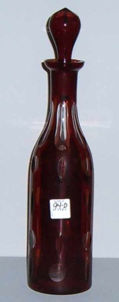 Ruby cut to clear decanter with stopper - 3" round by 15" tall Ruby cut to clear decanter with stopper - 3" round by 15" tall