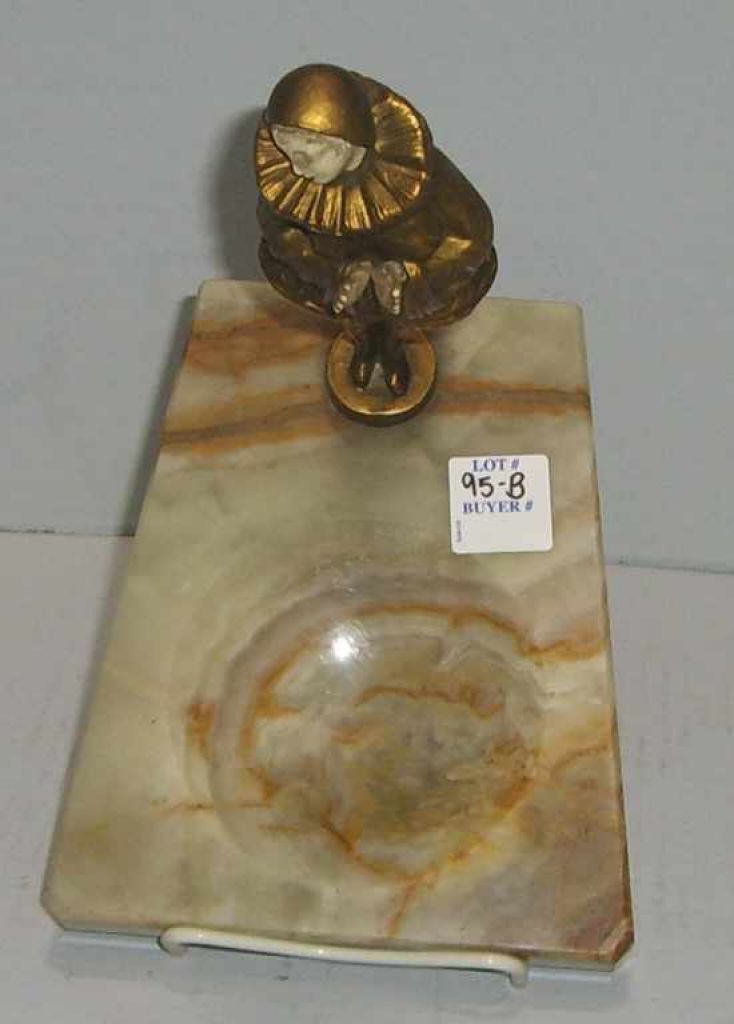 Large Alabaster Onyx Base Art Deco Ashtray w/Bronze Woman Figure - 8" tall Large Alabaster Onyx Base Art Deco Ashtray w/Bronze Woman Figure - 8" tall