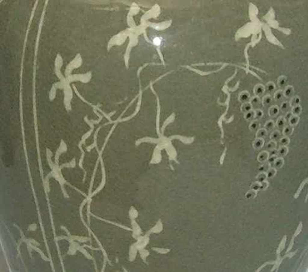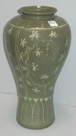 Korean Celadon Decorated Vase, Signed - 15 3/4" tall Korean Celadon Decorated Vase, Signed - 15 3/4" tall