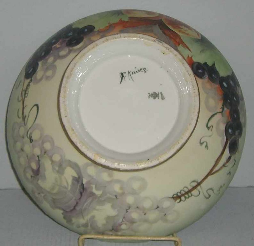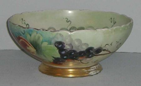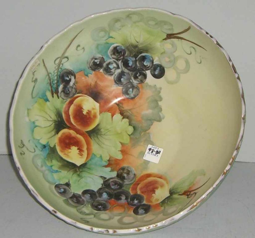 Hand painted with fruit punch bowl footed gold trim - 13 3/4" round. Austrian. Hand painted with fruit punch bowl footed gold trim - 13 3/4" round. Austrian.