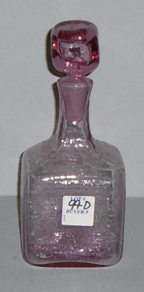 Pink square decanter with stopper - 3" square by 8" tall Pink square decanter with stopper - 3" square by 8" tall