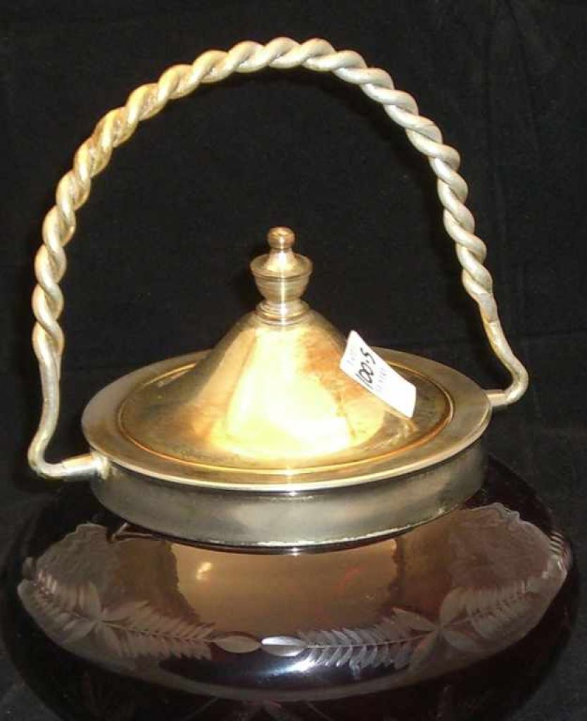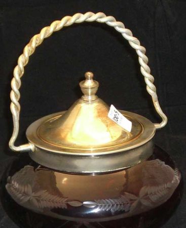 Cranberry cut to clear w/silver plated fittings Bavarian biscuit bowl Cranberry cut to clear w/silver plated fittings Bavarian biscuit bowl