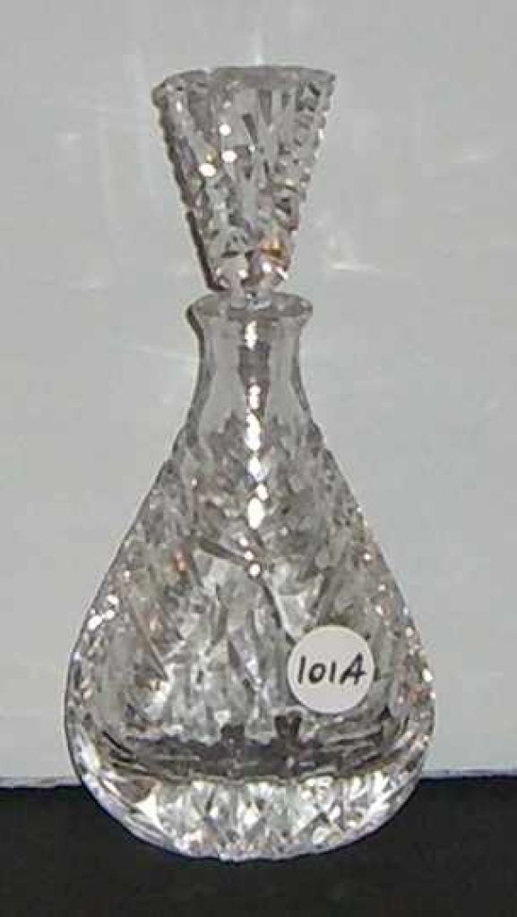 Cut glass perfume bottle - 3" by 2" by 6 1/2" Cut glass perfume bottle - 3" by 2" by 6 1/2"
