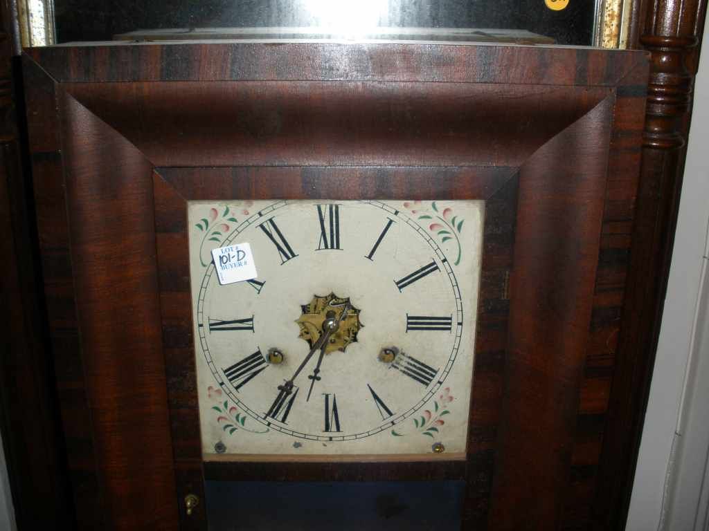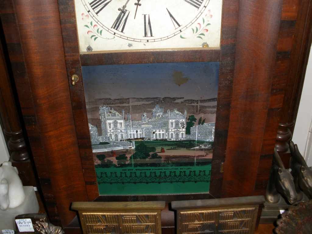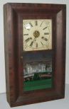 Jerome Company double decker mantle clock with reverse painting mahogany case - 26" tall by 15 1/2" wide by 4 1/4" deep Jerome Company double decker mantle clock with reverse painting mahogany case - 26" tall by 15 1/2" wide by 4 1/4" deep