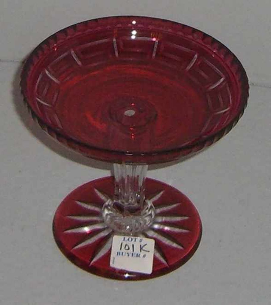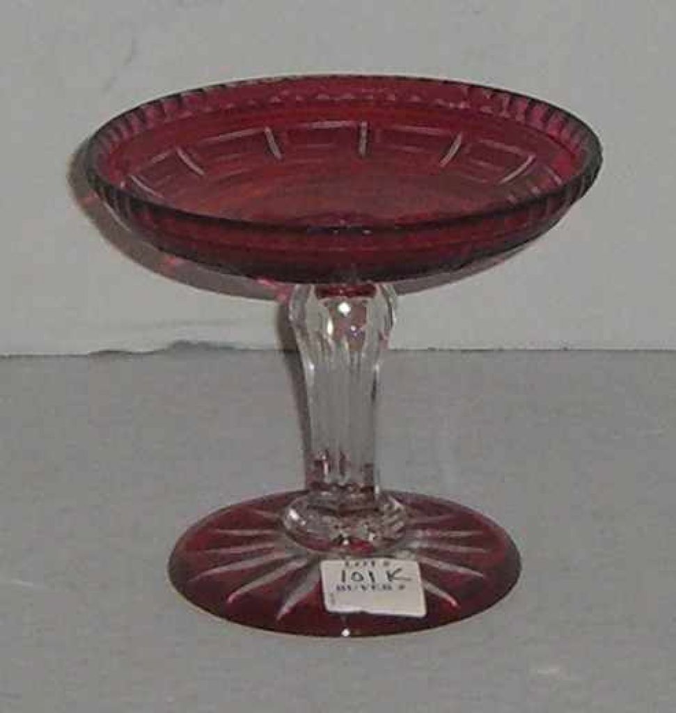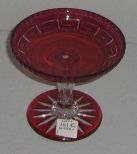 Cranberry cut to clear compote small - 5" round by 4 1/2" tall Cranberry cut to clear compote small - 5" round by 4 1/2" tall