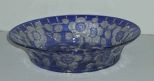 Blue cut to clear bowl with flowers - 12" round by 3" tall Blue cut to clear bowl with flowers - 12" round by 3" tall