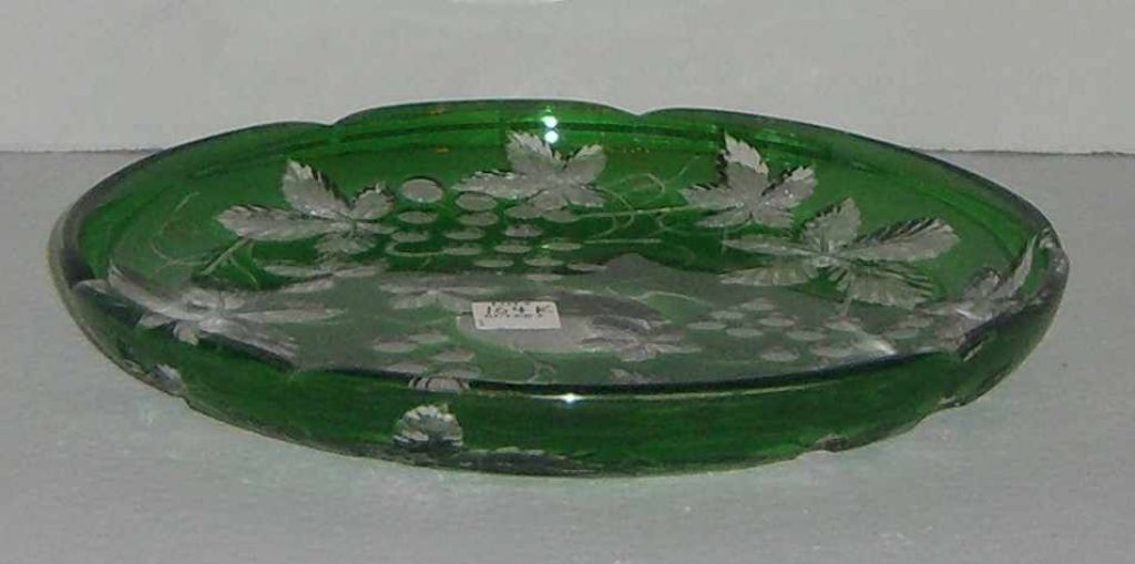 Green cut to clear plate with grapes - 12" round Green cut to clear plate with grapes - 12" round