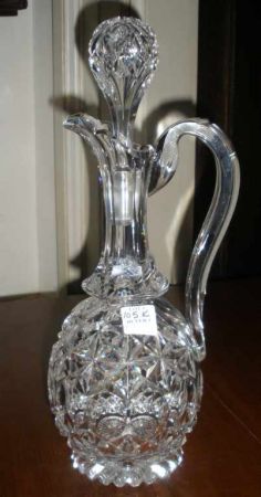 Cut glass handled decanter with spout & stopper - 14 1/2" tall Cut glass handled decanter with spout & stopper - 14 1/2" tall