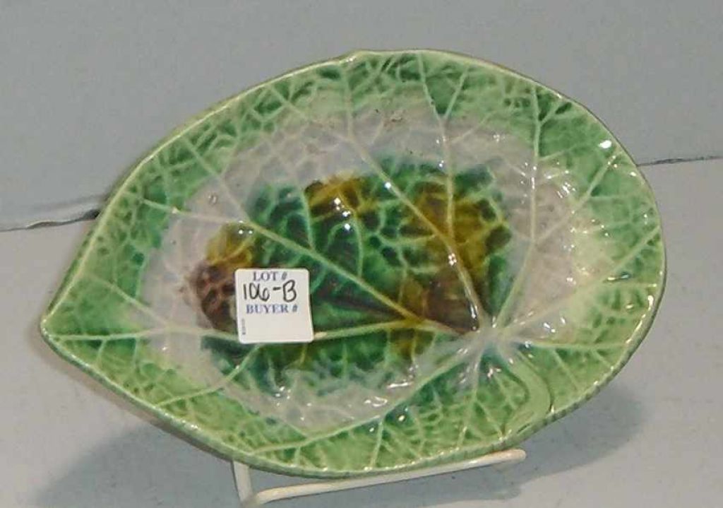 Majolica Leaf Shaped Dish, Green, Yellow and White - 8 3/4" long Majolica Leaf Shaped Dish, Green, Yellow and White - 8 3/4" long