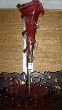 Victorian cranberry epergne with applied clear glass decoration - 16" tall Victorian cranberry epergne with applied clear glass decoration - 16" tall
