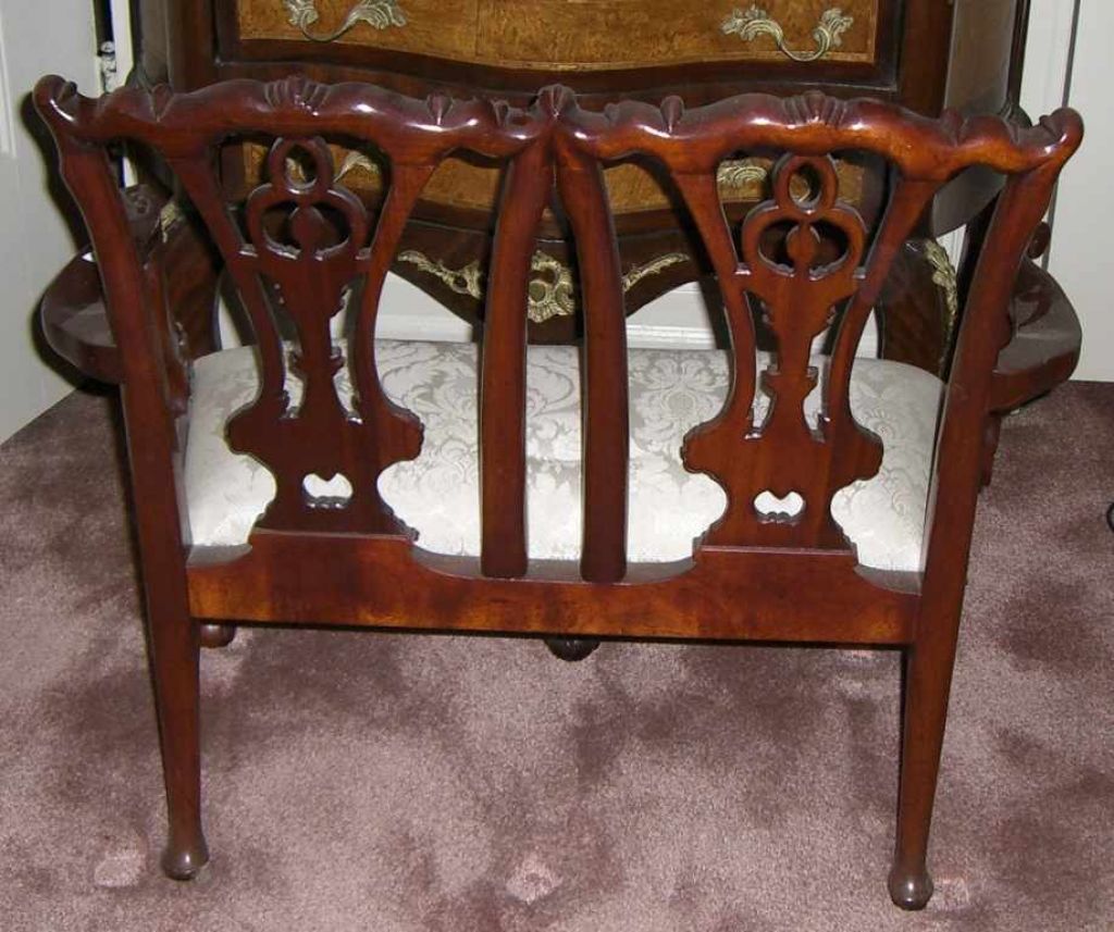 Reproduction child's double mahogany settee Chippendale style - 27 5/8" wide by 14" deep by 25 3/4" high Reproduction child's double mahogany settee Chippendale style - 27 5/8" wide by 14" deep by 25 3/4" high