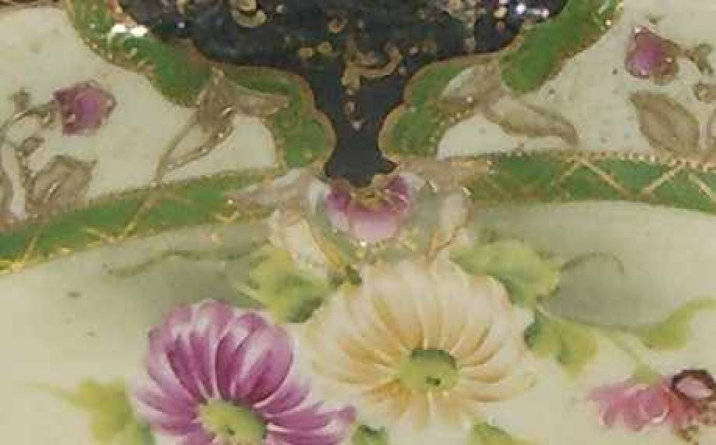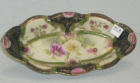 Japanese Oval Dish Black and Floral - 12 1/2" long Japanese Oval Dish Black and Floral - 12 1/2" long