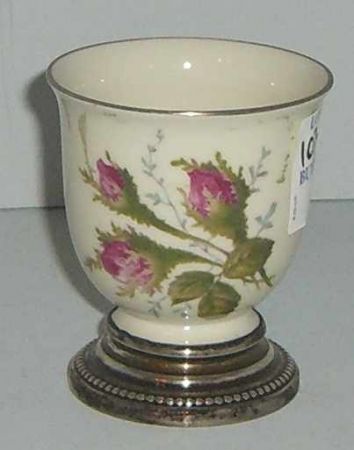 Hand painted with flowers Rosenthal match holder with sterling bottom. 2" round x 3" tall Hand painted with flowers Rosenthal match holder with sterling bottom. 2" round x 3" tall