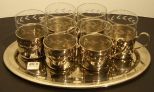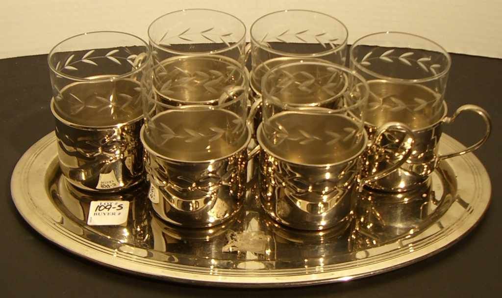 Art deco lemonade set - silver holders w/glass inserts and tray - tray 12 1/2" Art deco lemonade set - silver holders w/glass inserts and tray - tray 12 1/2"
