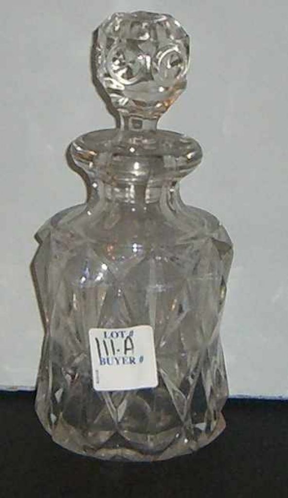 Clear perfume bottle with diamond shapes - 3" round by 7" tall Clear perfume bottle with diamond shapes - 3" round by 7" tall