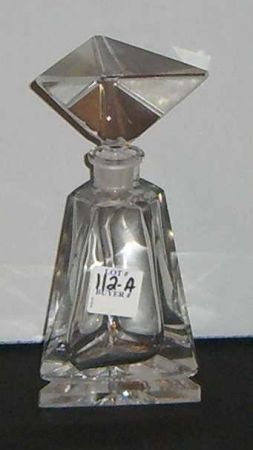 Clear triangle perfume bottle with triangle stopper - 7" tall Clear triangle perfume bottle with triangle stopper - 7" tall