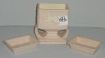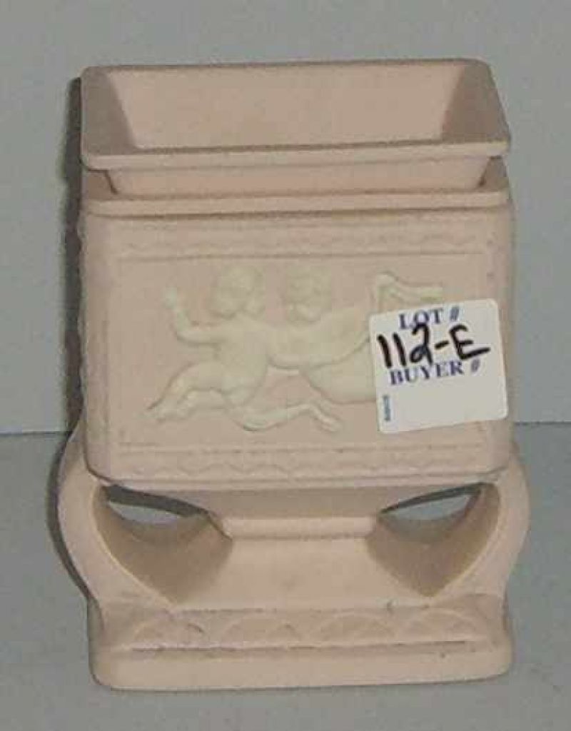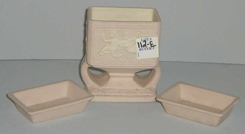 Pink porcelain cigarette holder with raised cherubs, 2 ashtray's on top Pink porcelain cigarette holder with raised cherubs, 2 ashtray's on top