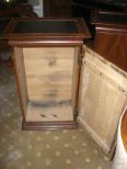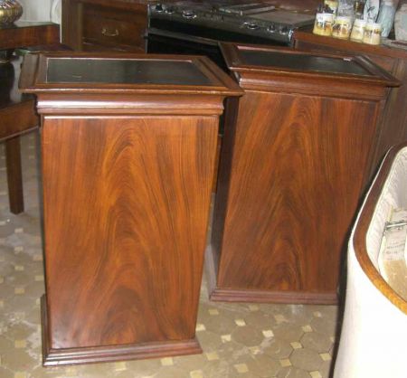 Pair of mahogany grain painted one door cabinets with inset black slate tops - 35" tall bay 22" wide by 17" deep Pair of mahogany grain painted one door cabinets with inset black slate tops - 35" tall bay 22" wide by 17" deep