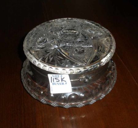 Cut glass hinged powder box, geometric - 4 1/2" round Cut glass hinged powder box, geometric - 4 1/2" round