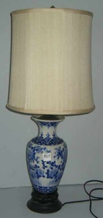 Blue & white oriental style lamp with flowers Blue & white oriental style lamp with flowers