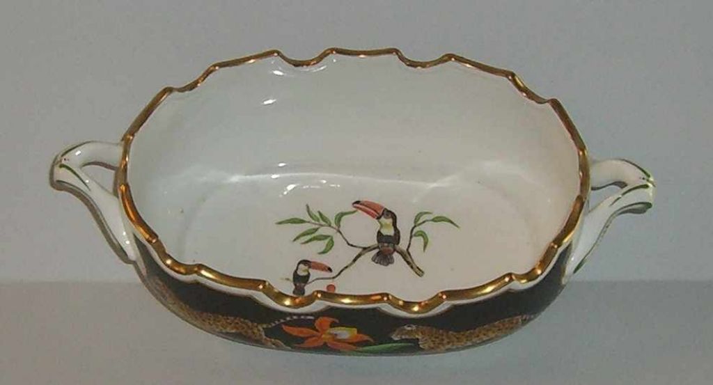 Chase "Jaguar Jungle" double handle tureen - 12 inches from handle to handle & 5 1/2 inches wide Chase "Jaguar Jungle" double handle tureen - 12 inches from handle to handle & 5 1/2 inches wide