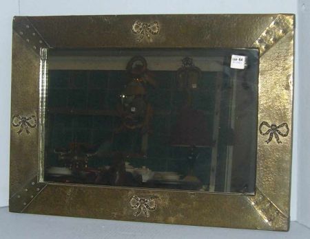 Brass framed wall mirror with ribbon bow decoration - 17" tall by 24" wide Brass framed wall mirror with ribbon bow decoration - 17" tall by 24" wide