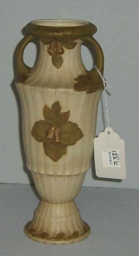 Royal Dux double handle vase with flowers white & gold - 4" round by 12" tall Royal Dux double handle vase with flowers white & gold - 4" round by 12" tall