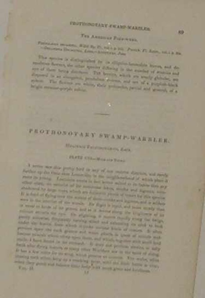 1588 Audubon print Prothonotary Swamp Warbler