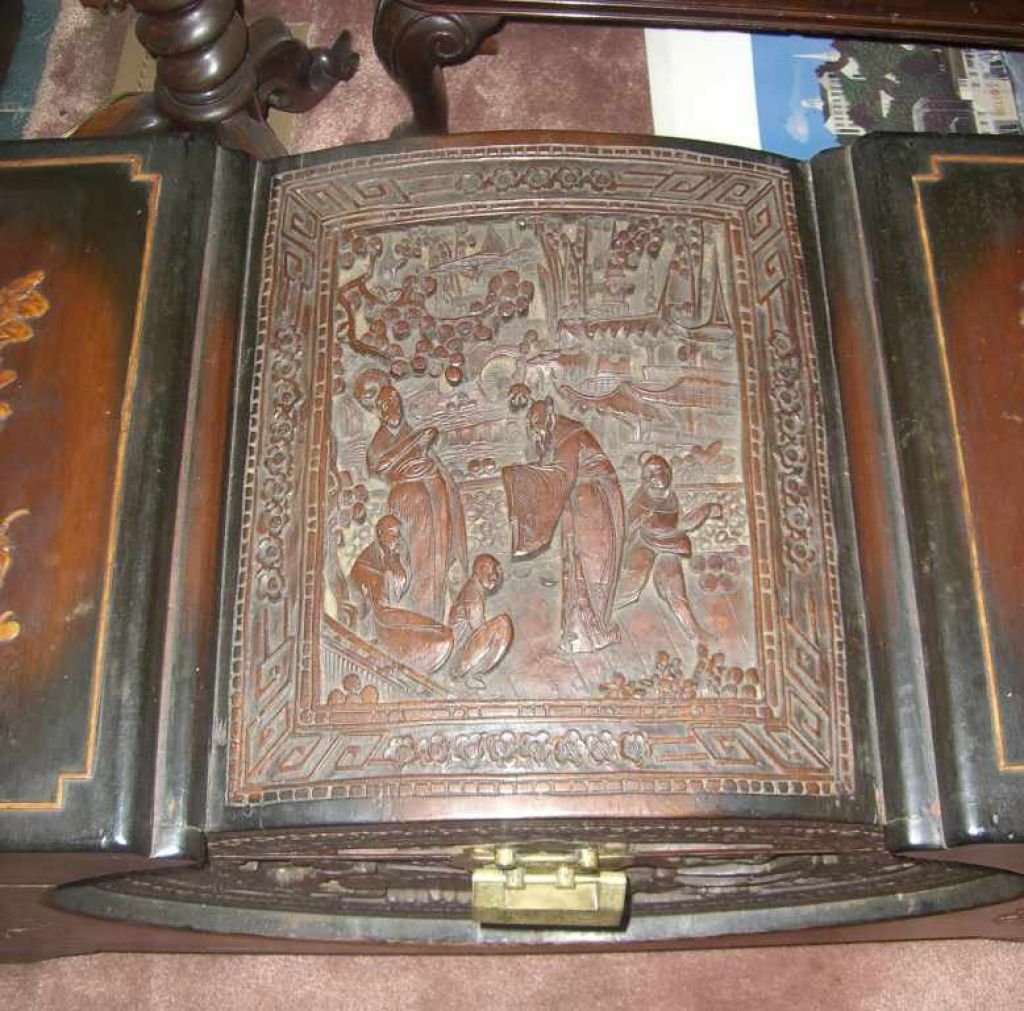 Chinese deep relief carved & decoration blanket & storage chest - 35" wide by 16" deep by 17" tall Chinese deep relief carved & decoration blanket & storage chest - 35" wide by 16" deep by 17" tall