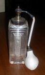 Lalique tall perfume bottle with center panel frosted etching of nude lady with sprayer - 8 1/2" tall Lalique tall perfume bottle with center panel frosted etching of nude lady with sprayer - 8 1/2" tall