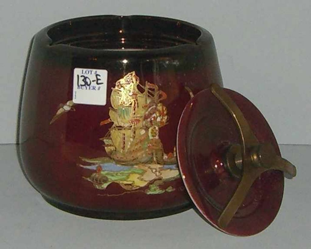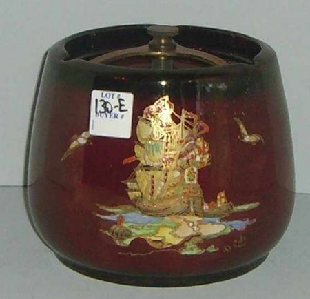 1652 Crown Devon Red Background Humidor with Ship