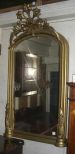Gilt framed mirror - 48" tall by 25" wide with applied carved crown. Gilt framed mirror - 48" tall by 25" wide with applied carved crown.