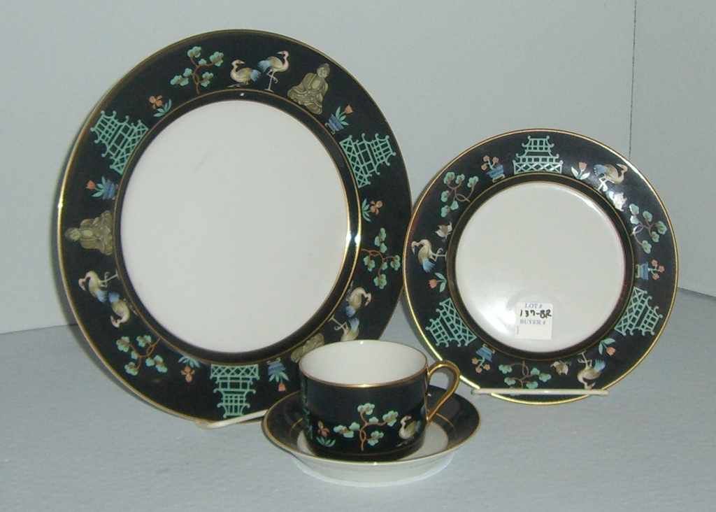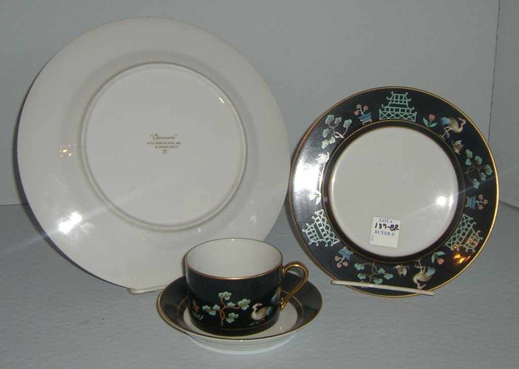 Fitz & Floyd china "Chinoiserie" pattern, 47 pcs - 11 dinner plates, 12 salad plates, 12 cups, 12 saucers, Fitz & Floyd china "Chinoiserie" pattern, 47 pcs - 11 dinner plates, 12 salad plates, 12 cups, 12 saucers,