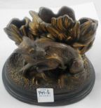 Snarling dog metal match & cigarette holder with flowers. 7" length x 5 1/2" width x 5" tall Snarling dog metal match & cigarette holder with flowers. 7" length x 5 1/2" width x 5" tall