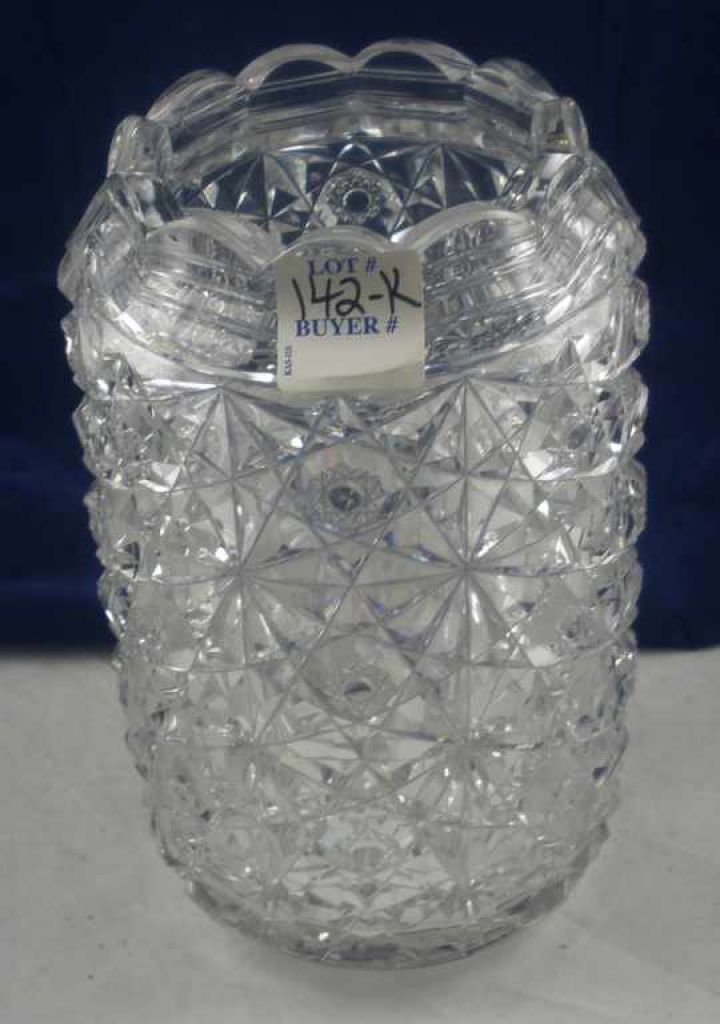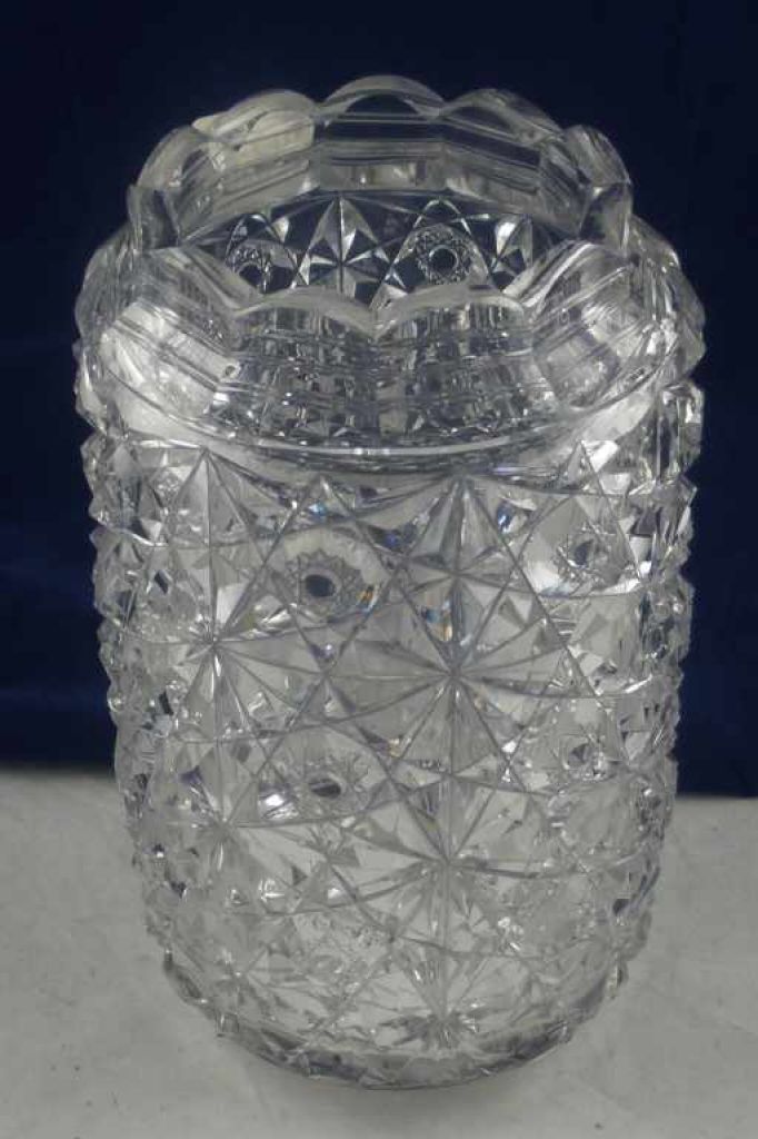 Cut glass vase round & short, Persian cut cylinder - 5" round by 8" tall Cut glass vase round & short, Persian cut cylinder - 5" round by 8" tall