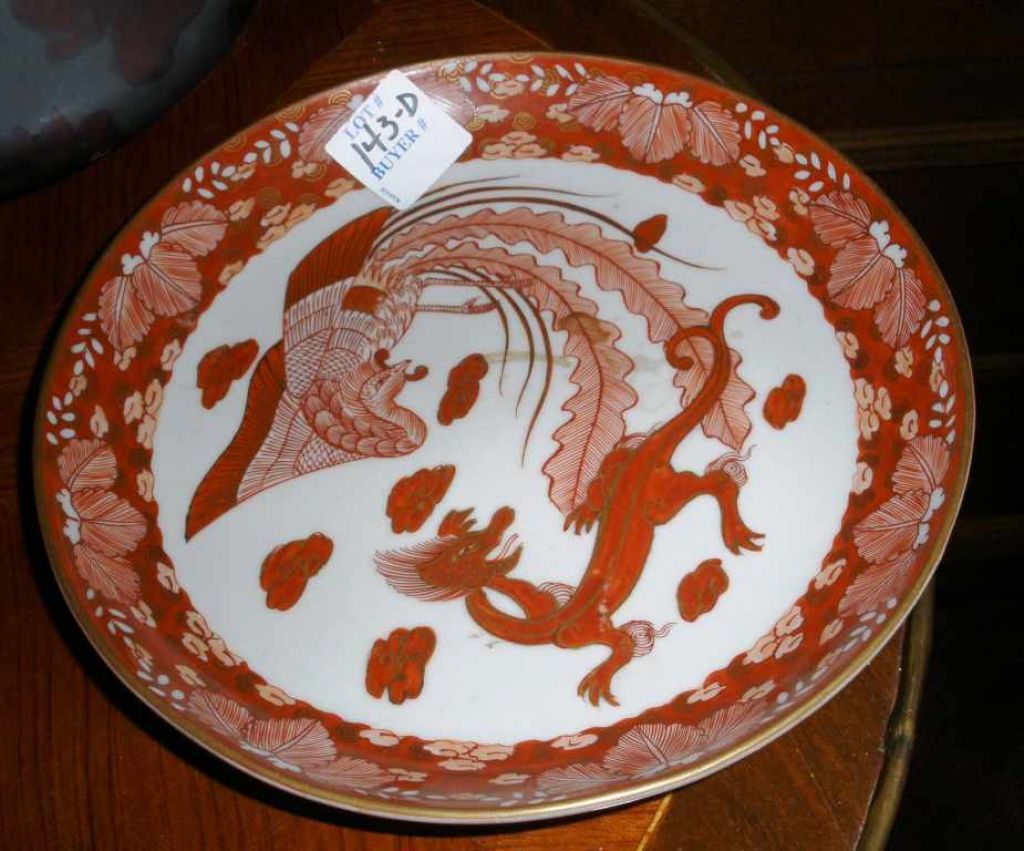 Oriental Kutani plate with peacock & dragon - 7" round Oriental Kutani plate with peacock & dragon - 7" round