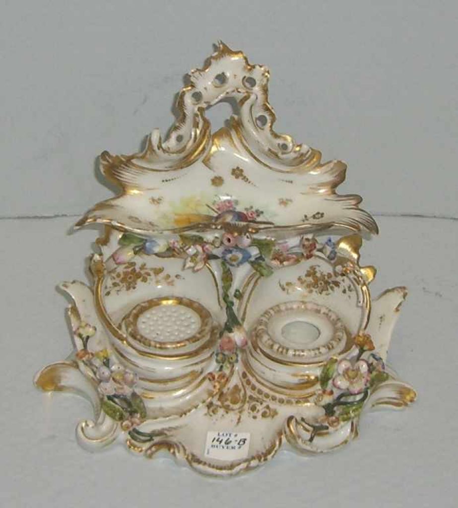 Old Paris Very Ornate Ink Stained, Gilding and Applied Floral. 6" width x 9" length x 8" height Old Paris Very Ornate Ink Stained, Gilding and Applied Floral. 6" width x 9" length x 8" height