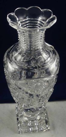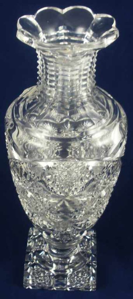 Cut glass square base vase, rare form - 10" tall Cut glass square base vase, rare form - 10" tall