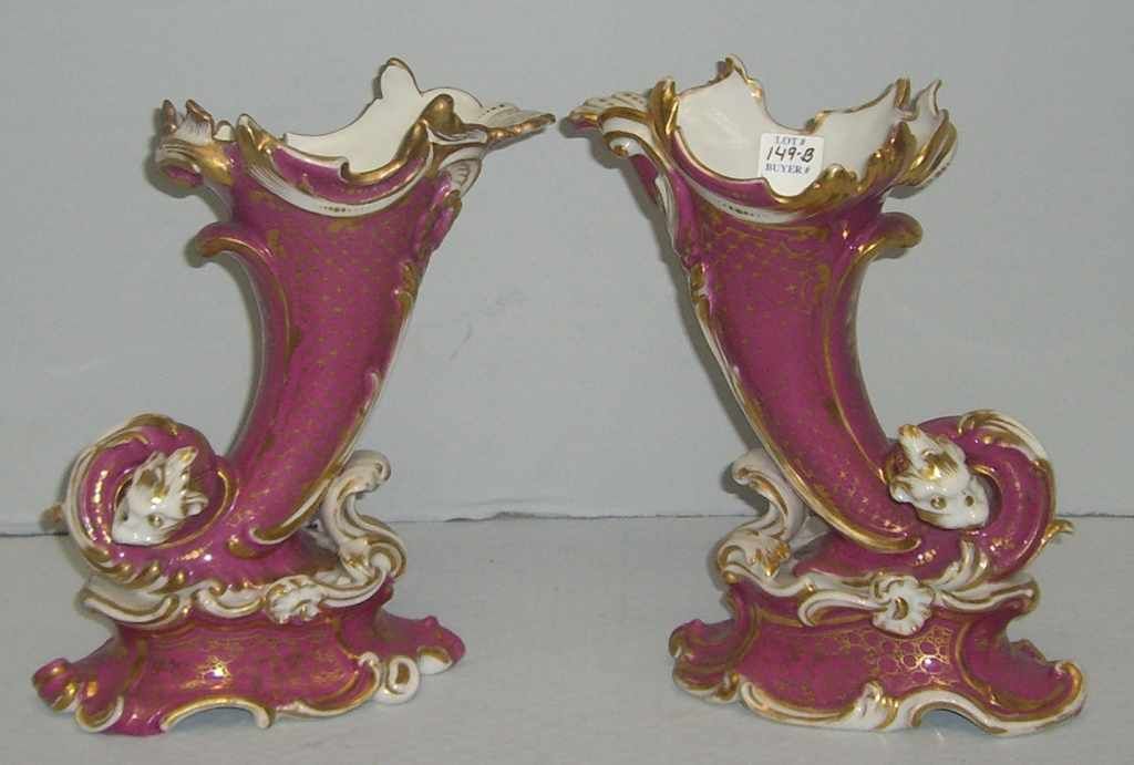 Pair Lavender Cornucopia Old Paris Vases w/Dragon Heads - 10 1/4" tall Pair Lavender Cornucopia Old Paris Vases w/Dragon Heads - 10 1/4" tall