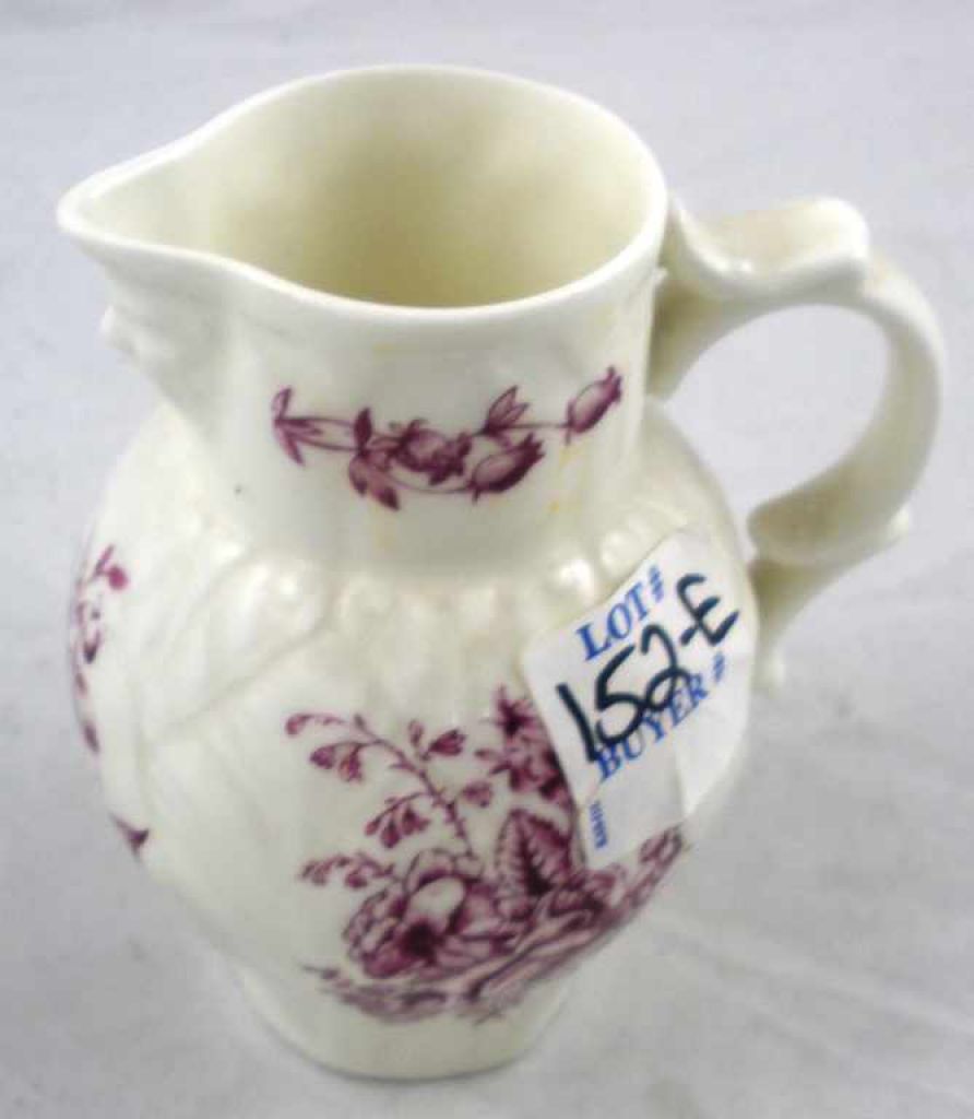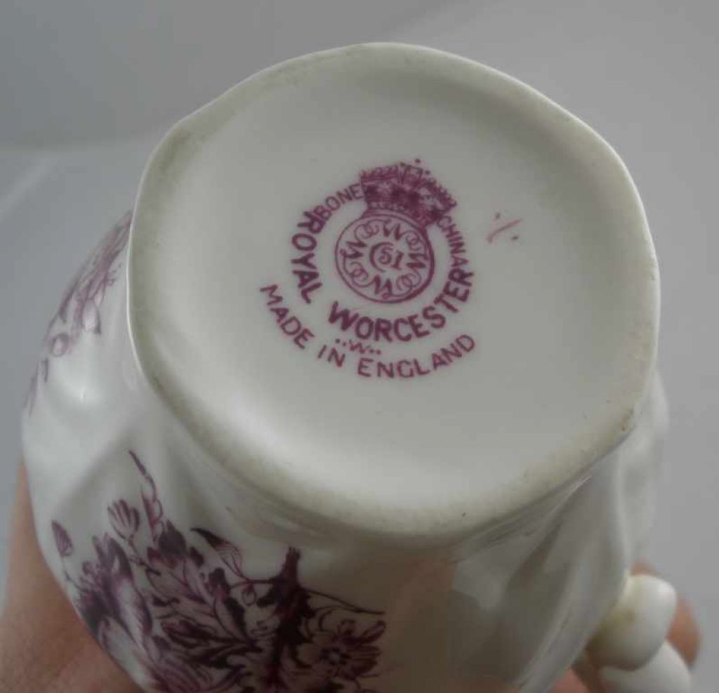 Royal Worcester creamer. White background with purple flowers. Spout is man's head - 4 1/2" tall Royal Worcester creamer. White background with purple flowers. Spout is man's head - 4 1/2" tall