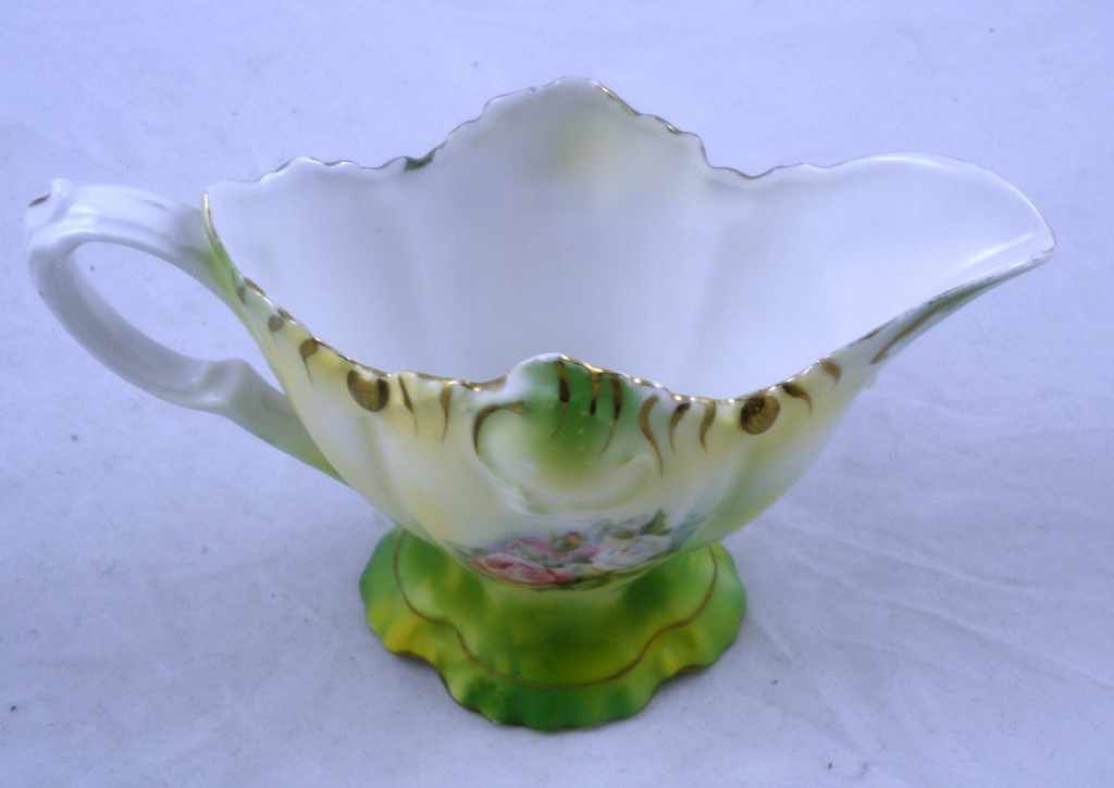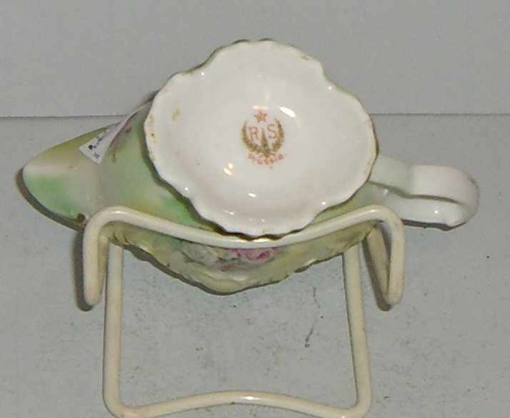 RS Prussia creamer with green background & pink flowers - 3" tall RS Prussia creamer with green background & pink flowers - 3" tall