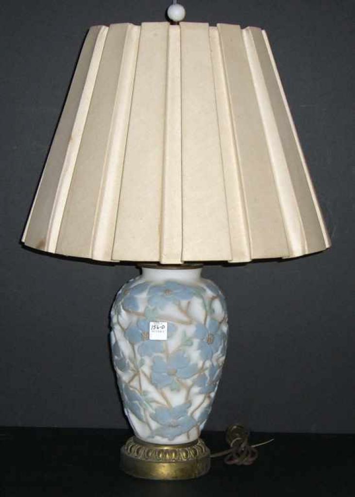 Consolidated Dogwood Floral Lamp. White with raised blue flowers. Consolidated Dogwood Floral Lamp. White with raised blue flowers.