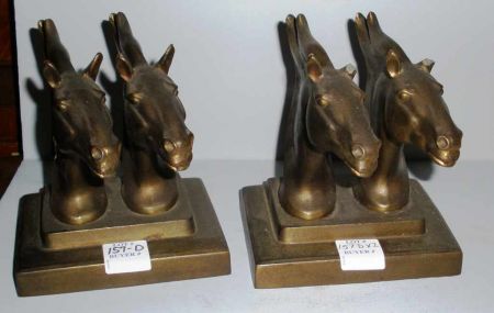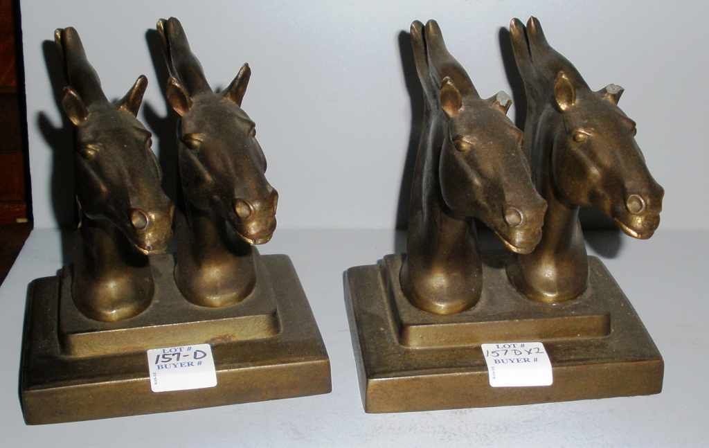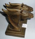Pair of metal Frankart double horse bookends - 5" length by 3 1/2" width by 5 1/2" tall Pair of metal Frankart double horse bookends - 5" length by 3 1/2" width by 5 1/2" tall