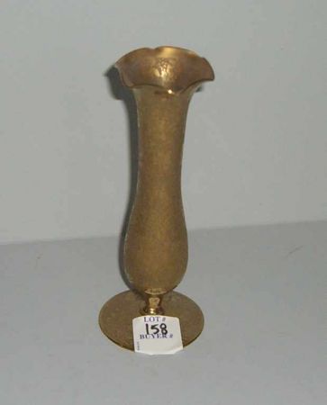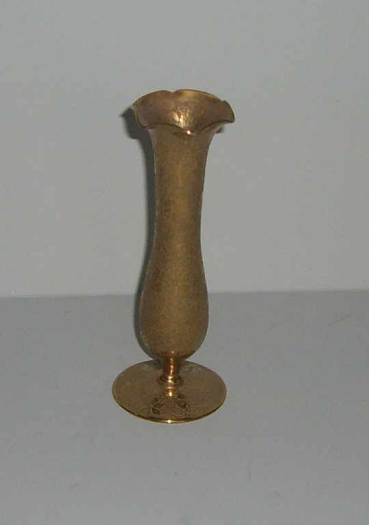 Small gold bud vase with flower designs - 6 inches tall - base is 2 1/4 inches round Small gold bud vase with flower designs - 6 inches tall - base is 2 1/4 inches round